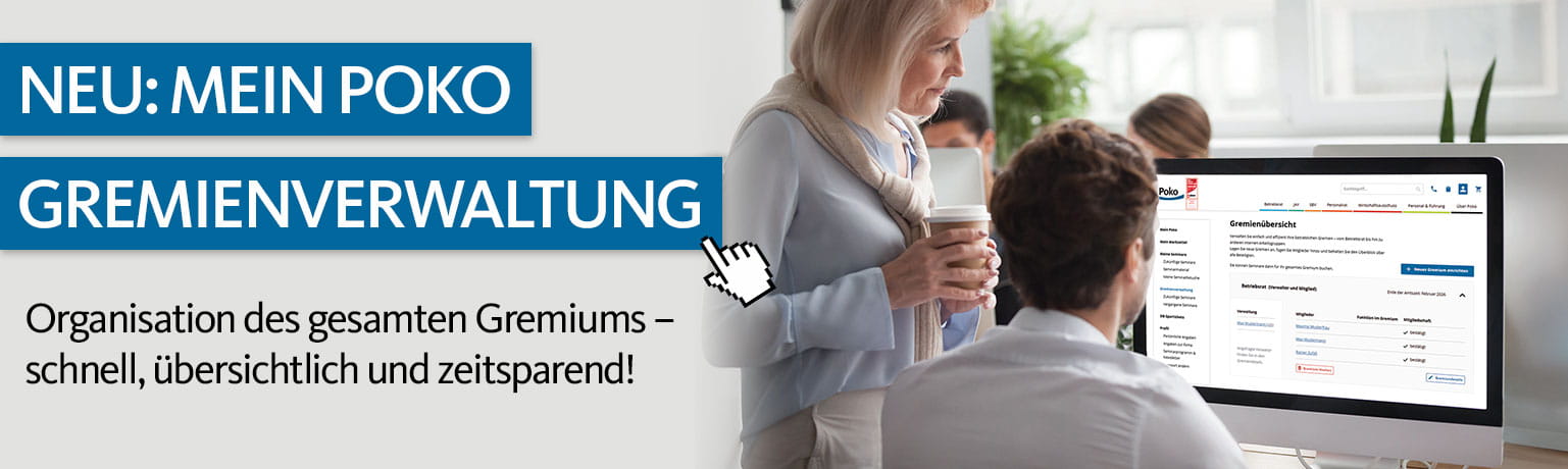 Willkommen bei Poko – Ihrem zuverlässigen Partner für professionelle Seminare und Schulungen rund um die Arbeitnehmervertretung. Als führender Anbieter können Sie bei uns umfassende Weiterbildungen für Betriebsräte, die Jugend- und Auszubildendenvertretung, die Schwerbehindertenvertretung, Personalräte und den Wirtschaftsausschuss buchen, um sich bestens auf Ihre verantwortungsvollen Aufgaben in diesen Ämtern vorzubereiten.
